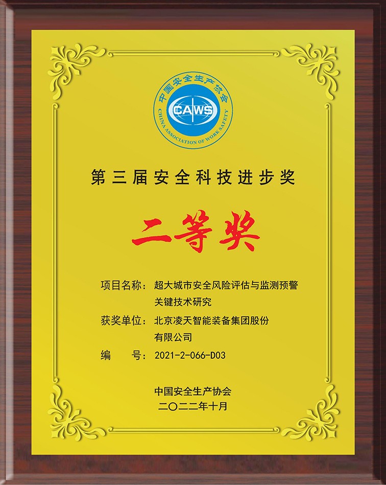 獎項類 | 第三屆安全科技進步獎二等獎 | 超大城市安全風險評估與監測預警關鍵技術研究 |